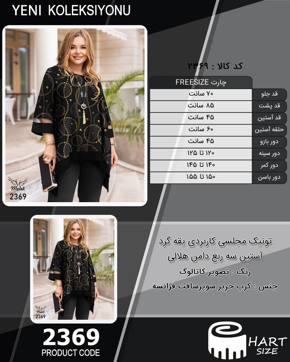 تونیک مجلسی کاربردی یقه گرد آستین سه ربع دامن هلالی سایز بزرگ