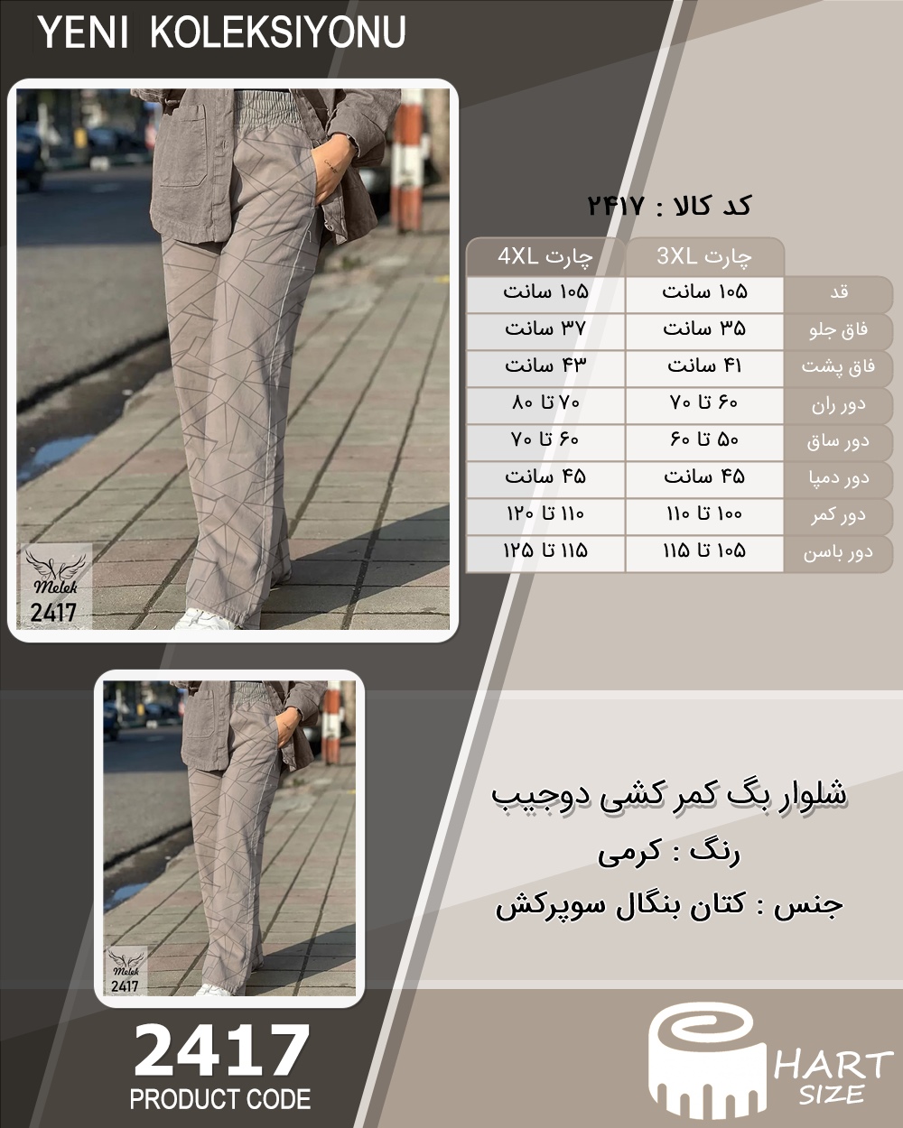 شلوار بگ کمر کشی دوجیب سایز بزرگ
